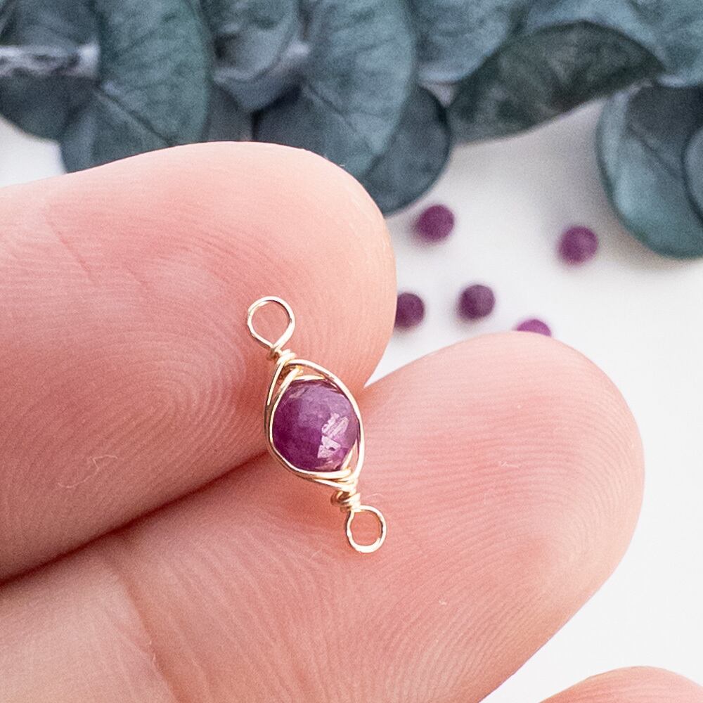 *2個* 天然石 パーツ 天然 ルビー ワイヤーラッピング コネクター チャーム 金 ワイヤー巻き te049