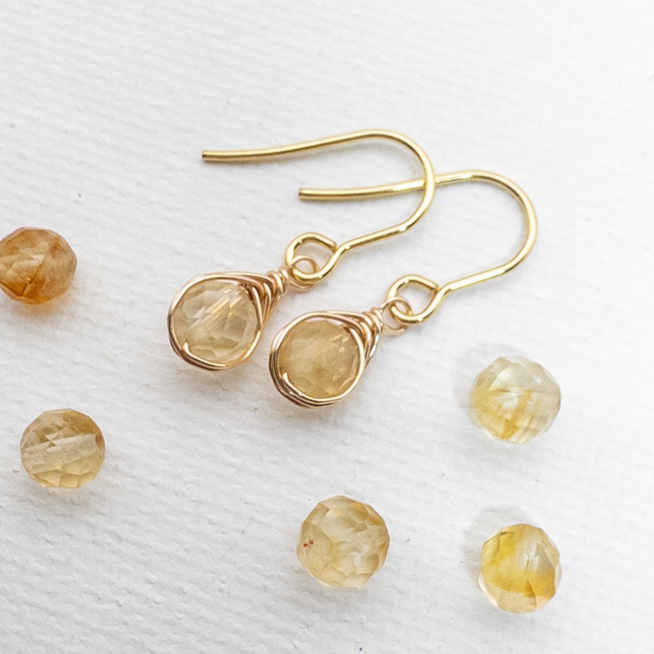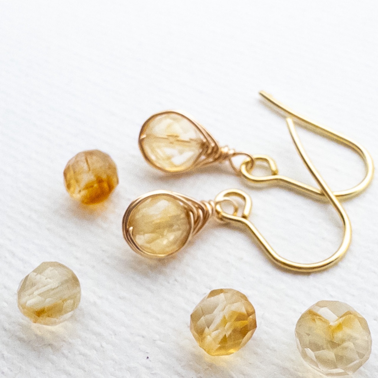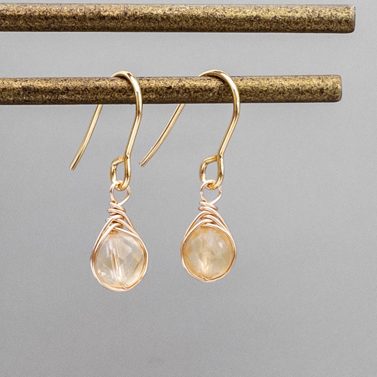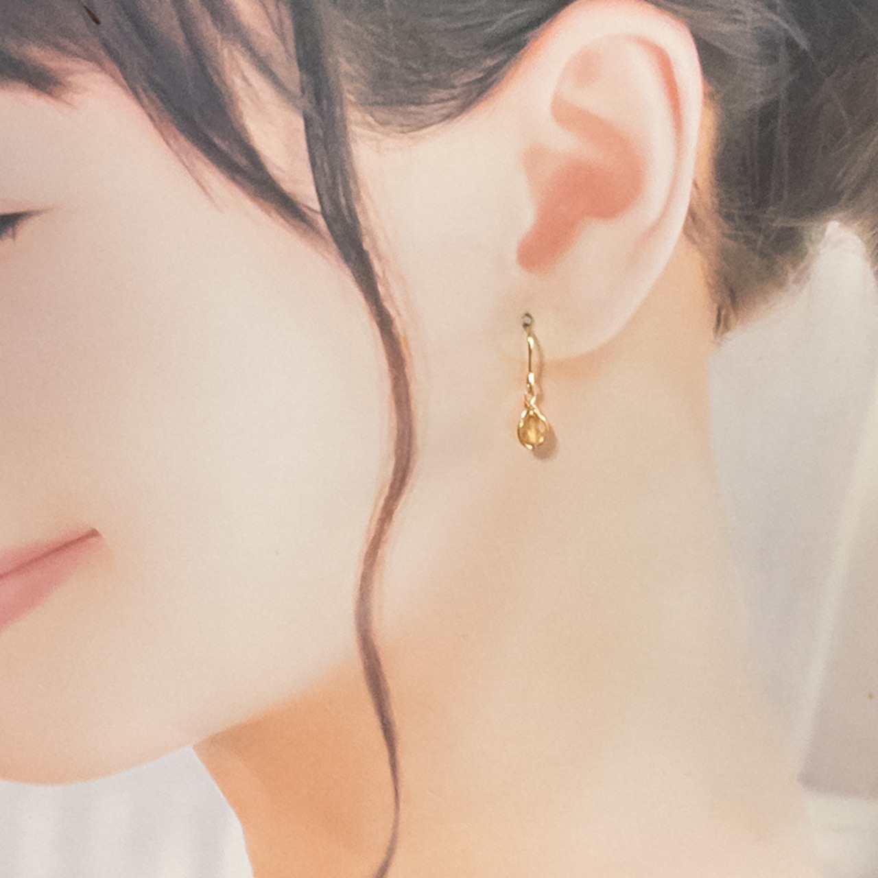 極小ピアス シトリン ピアス *embrace* ステンレス フックピアス ワイヤーラッピング em016s2