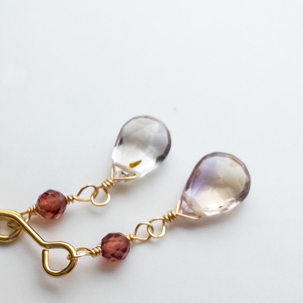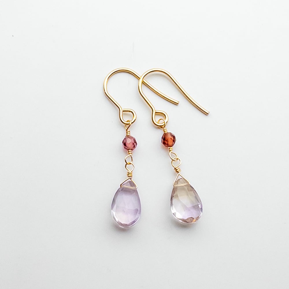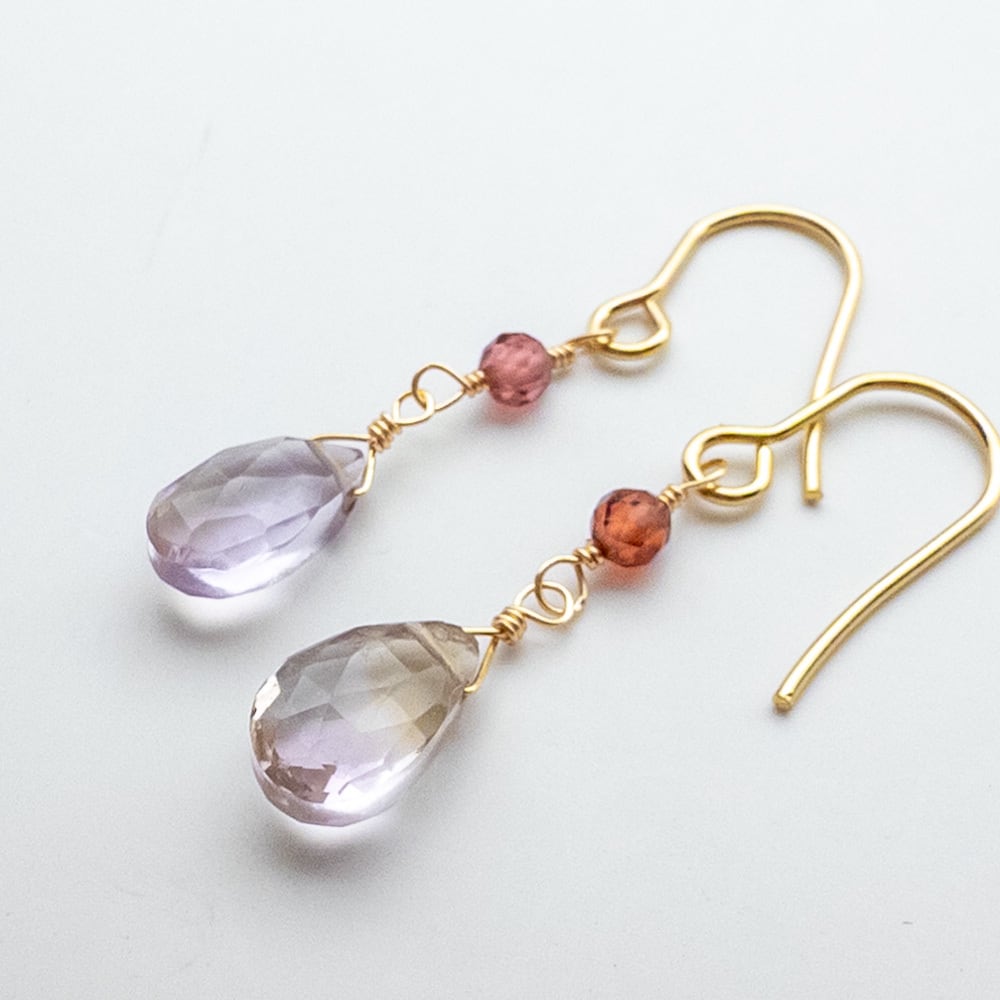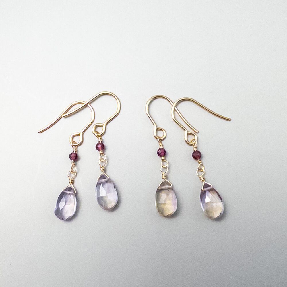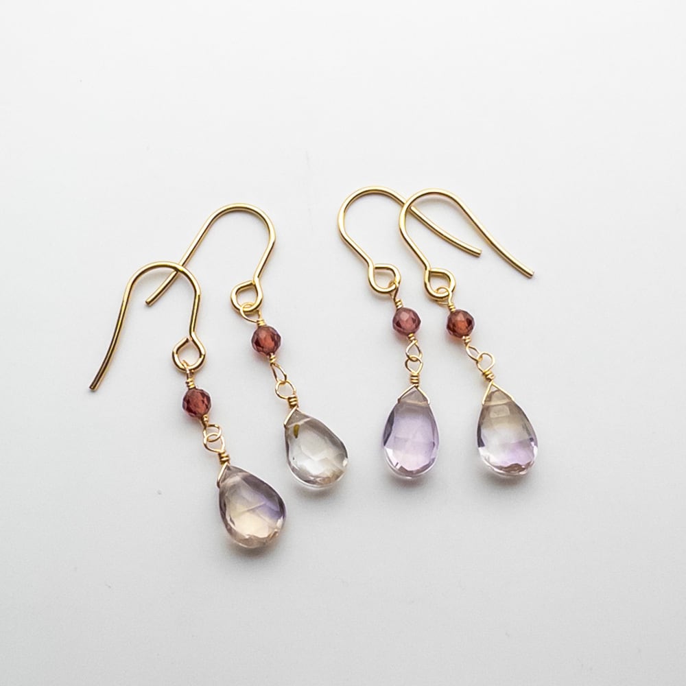 ボリビア産 宝石質 アメトリン ガーネット ピアス ステンレス フックピアス K14GF変更可能 ac255s4