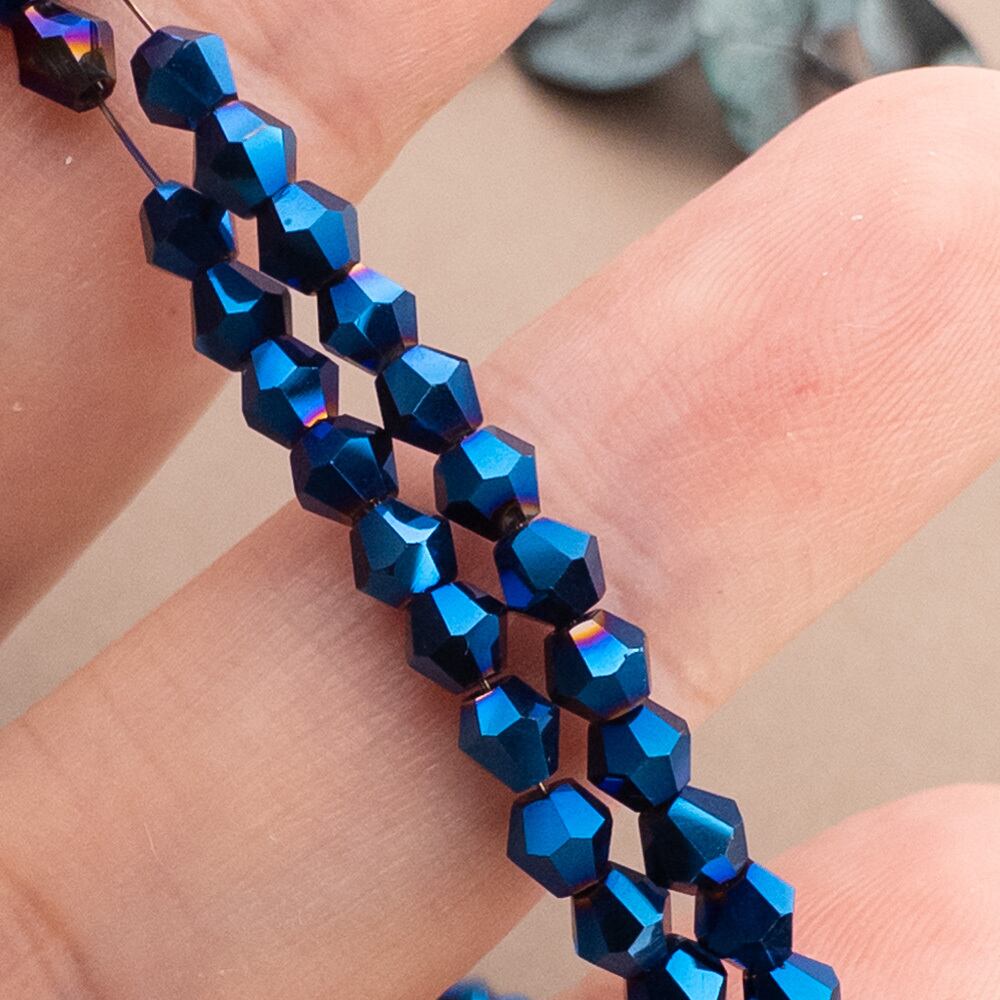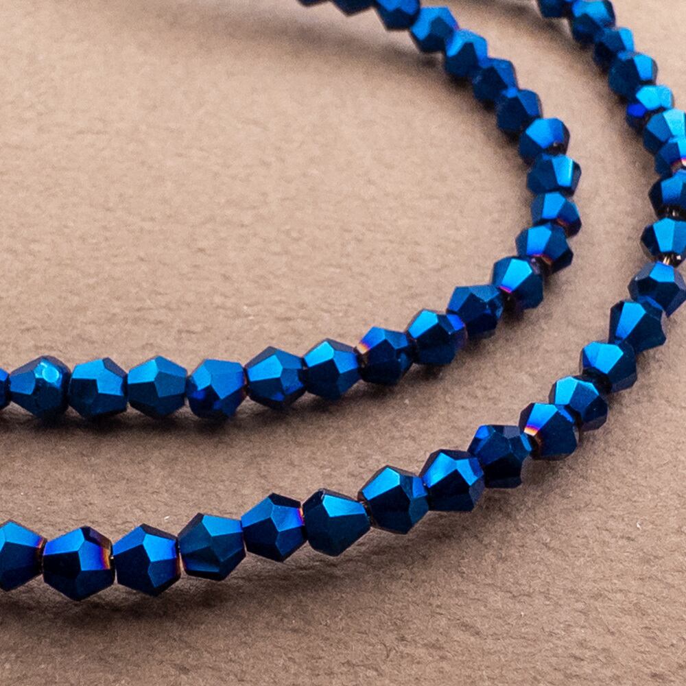 *2連* 電気メッキ ガラスビーズ 3x3mm ブルーメッキ 双円錐形 bz113s