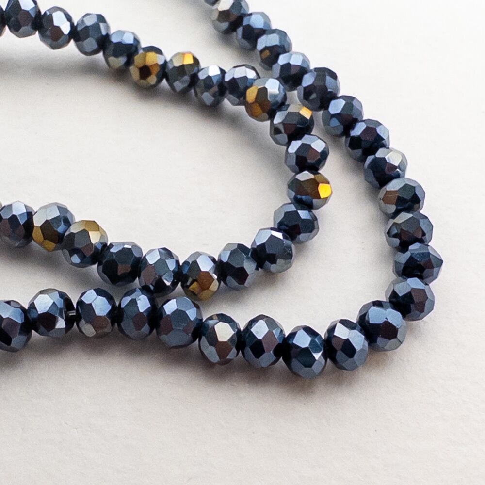 *2連* 電気メッキ ガラスビーズ 4x3mm ブラック ボタンカット ロンデル bz120s