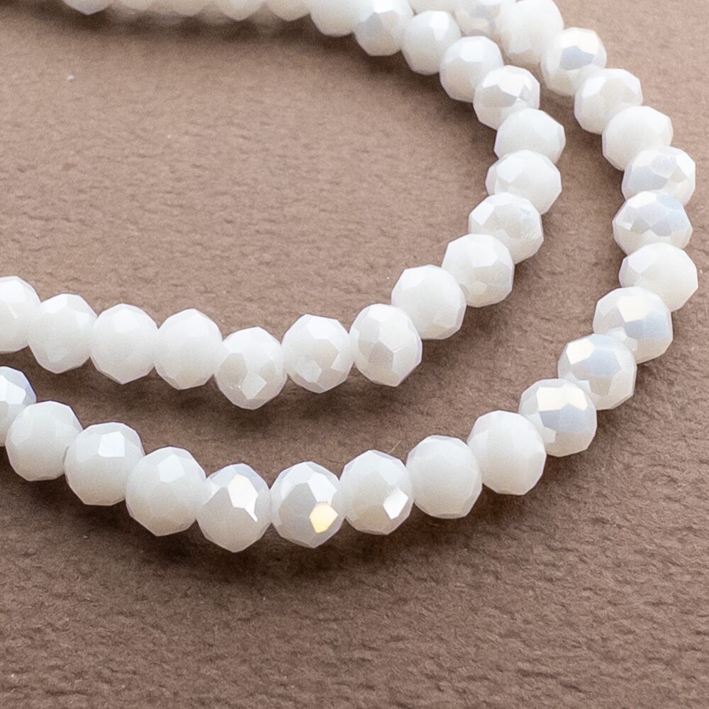 *2連* 電気メッキ ガラスビーズ 4x3mm ホワイト ボタンカット ロンデル bz117s