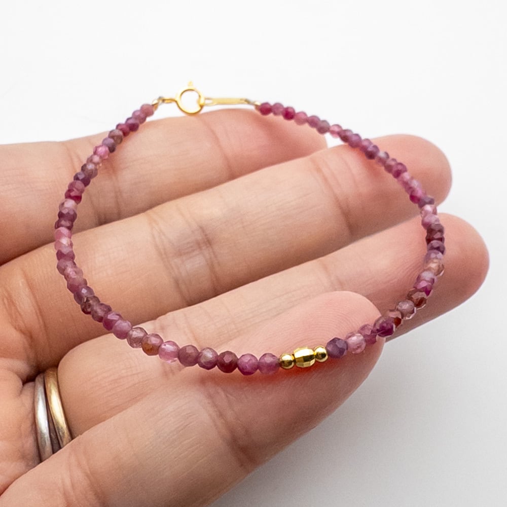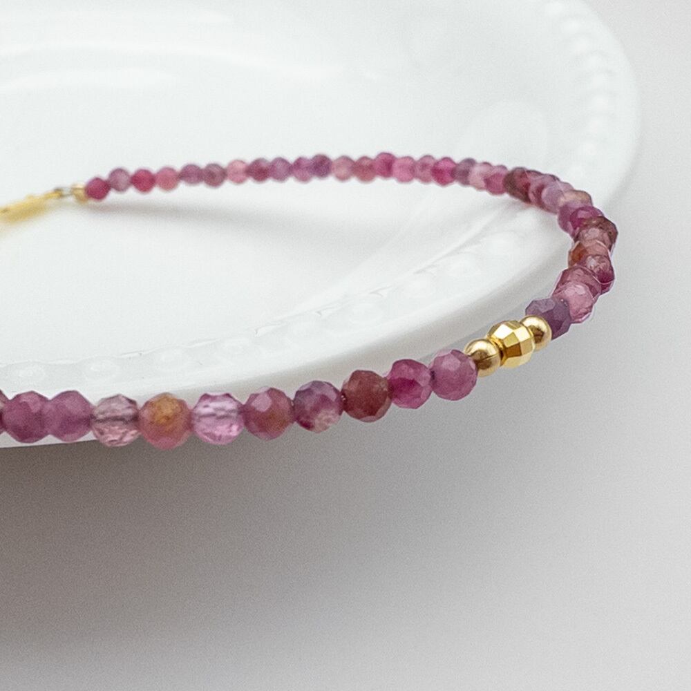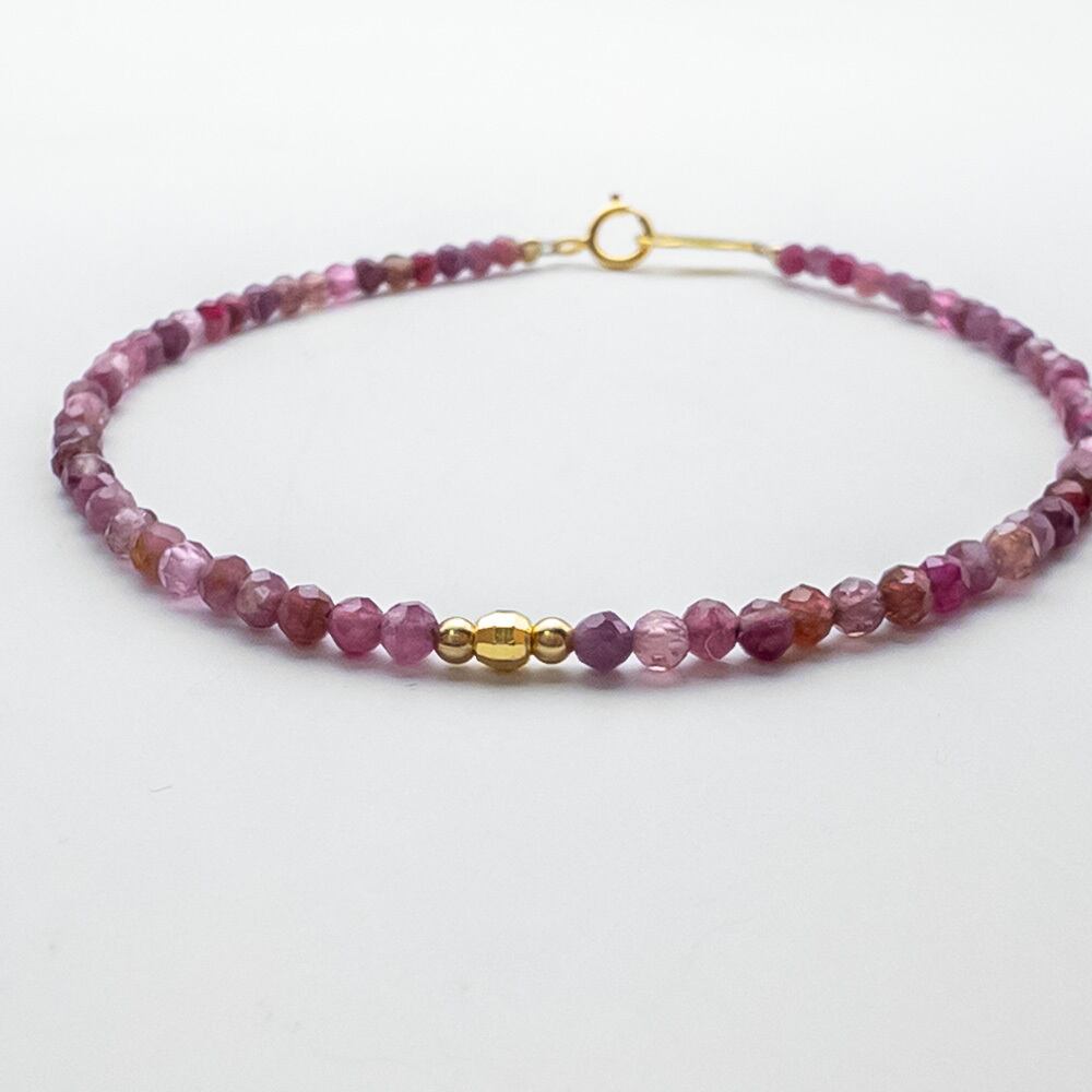 可愛らしいピンク色のお石でつくった華奢ブレスレットです