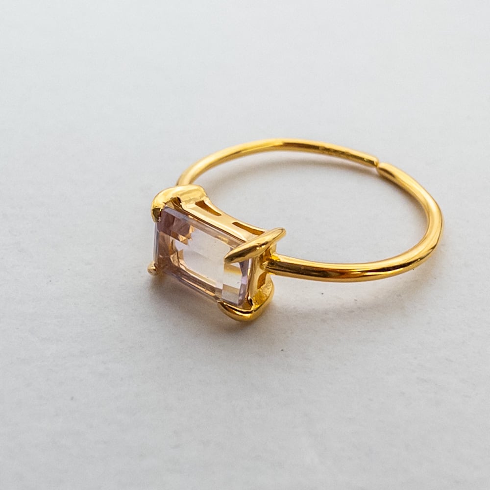 ボリビア産 アメトリン リング 華奢 指輪 SV925 レクタングル 天然石 フリーサイズ ピンキーリング r034
