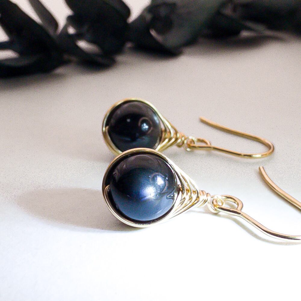 星が浮かぶ ブラックアイオライト ピアス *embrace* ステンレス フックピアス ワイヤーラッピング em038s