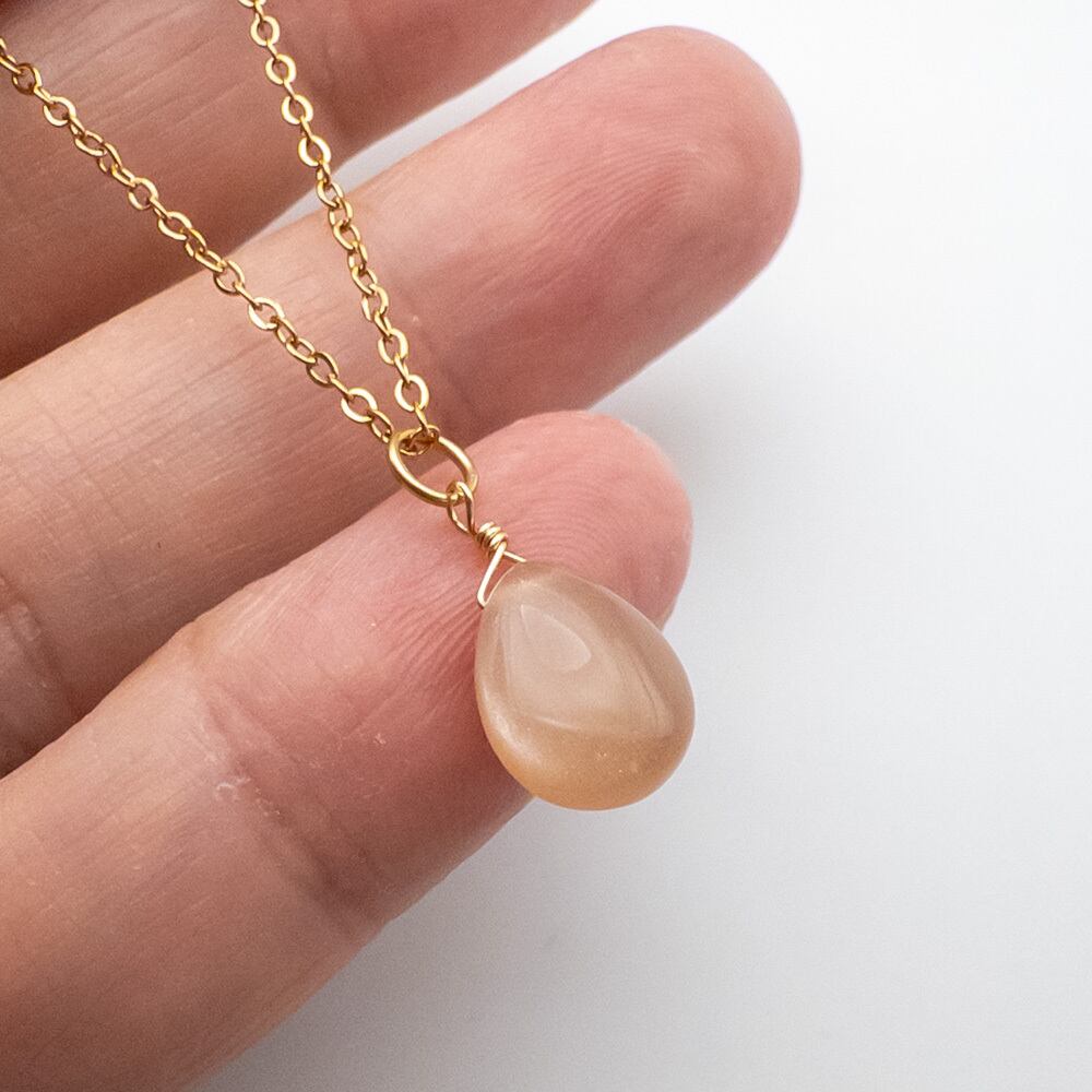 愛情で満たす タンザニア産 ピーチムーンストーン ペンダント ネックレス ステンレス K18GP p015s6
