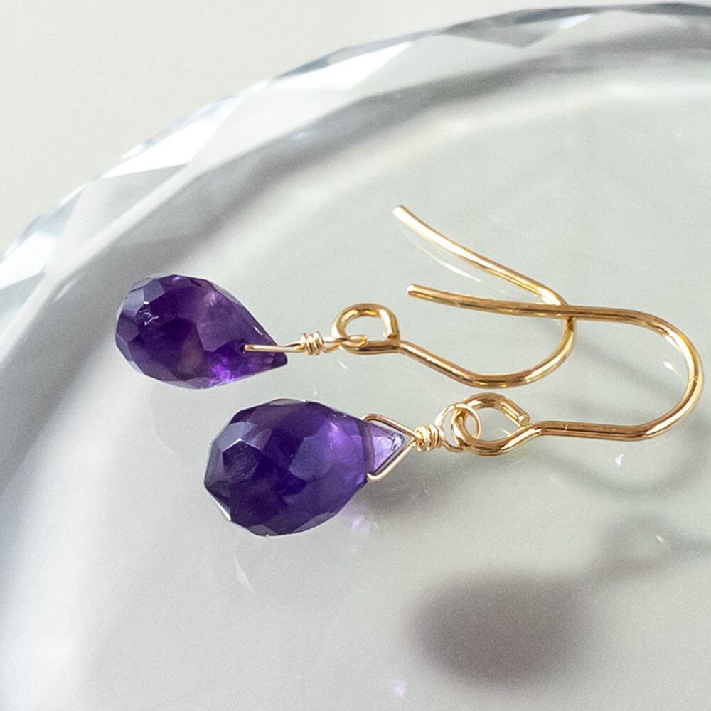 ザンビア産 アメジスト ピアス ステンレス *Solta* フックピアス K14GF変更可能 so072s5