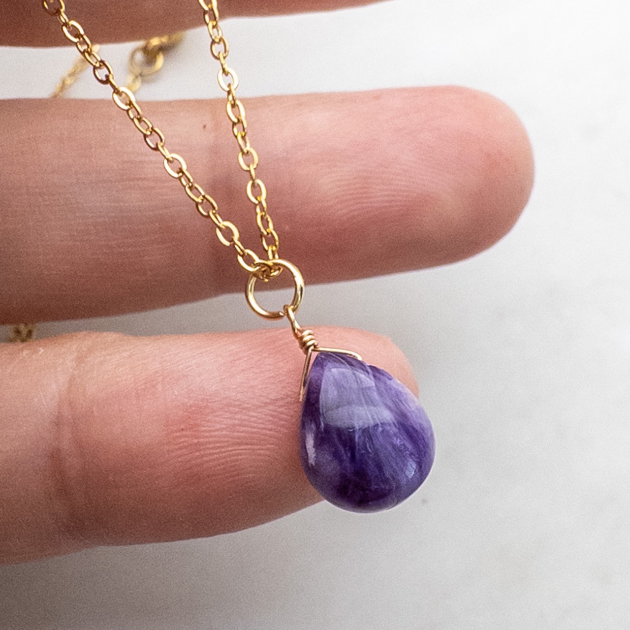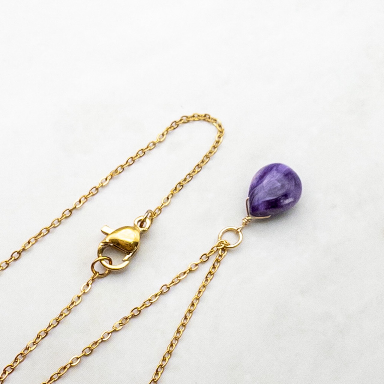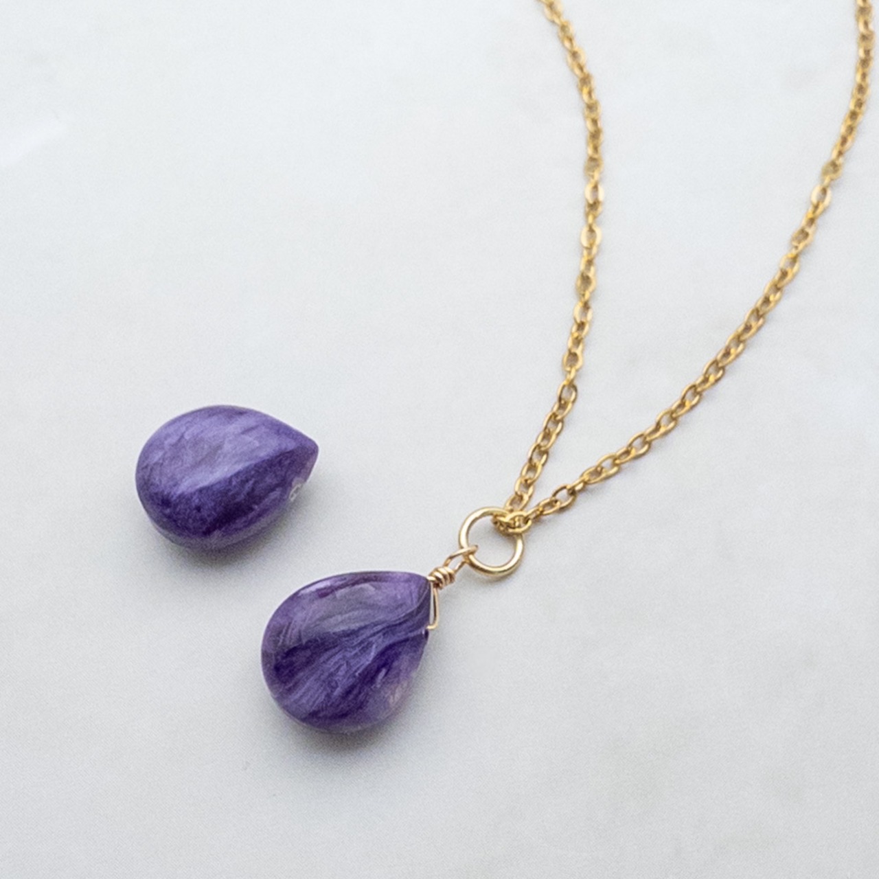 希少石 チャロアイト ペンダント ドロップ ステンレス ネックレス p129s3