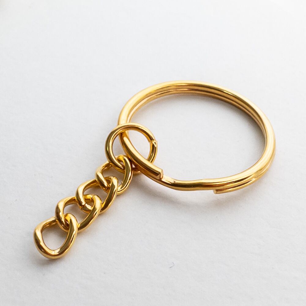 *10個* チェーン付き キーリング ゴールド アイアン製 ダブルリング 2重リング キーホルダー パーツ et093s
