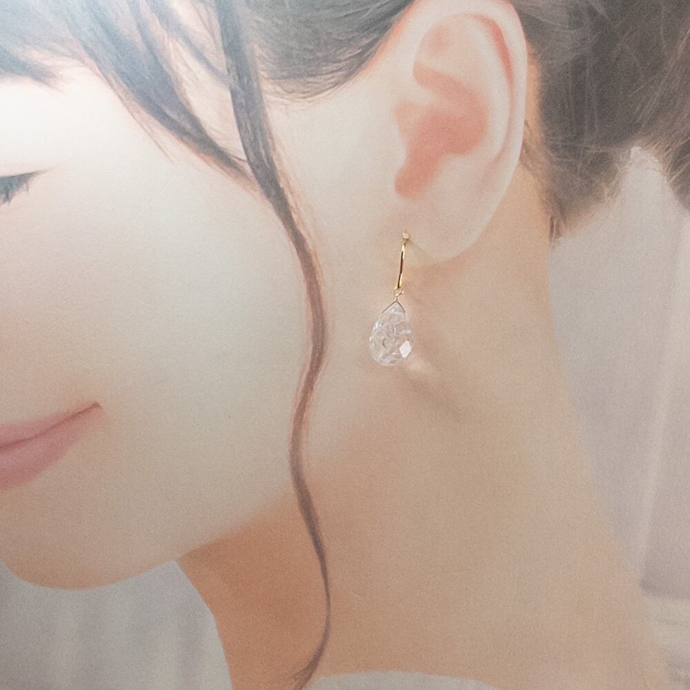 夢の実現 大粒 クラック水晶 ピアス ステンレス *Solta* フックピアス K14GF変更可能 so052s