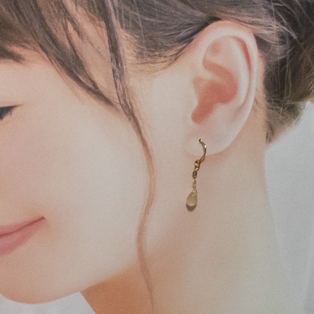 縦に小さく揺れるピアスです