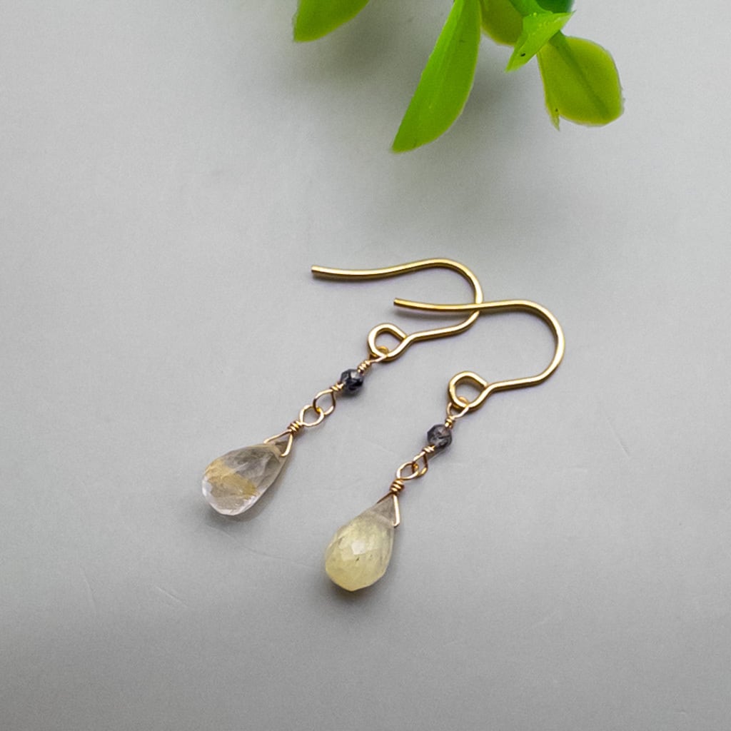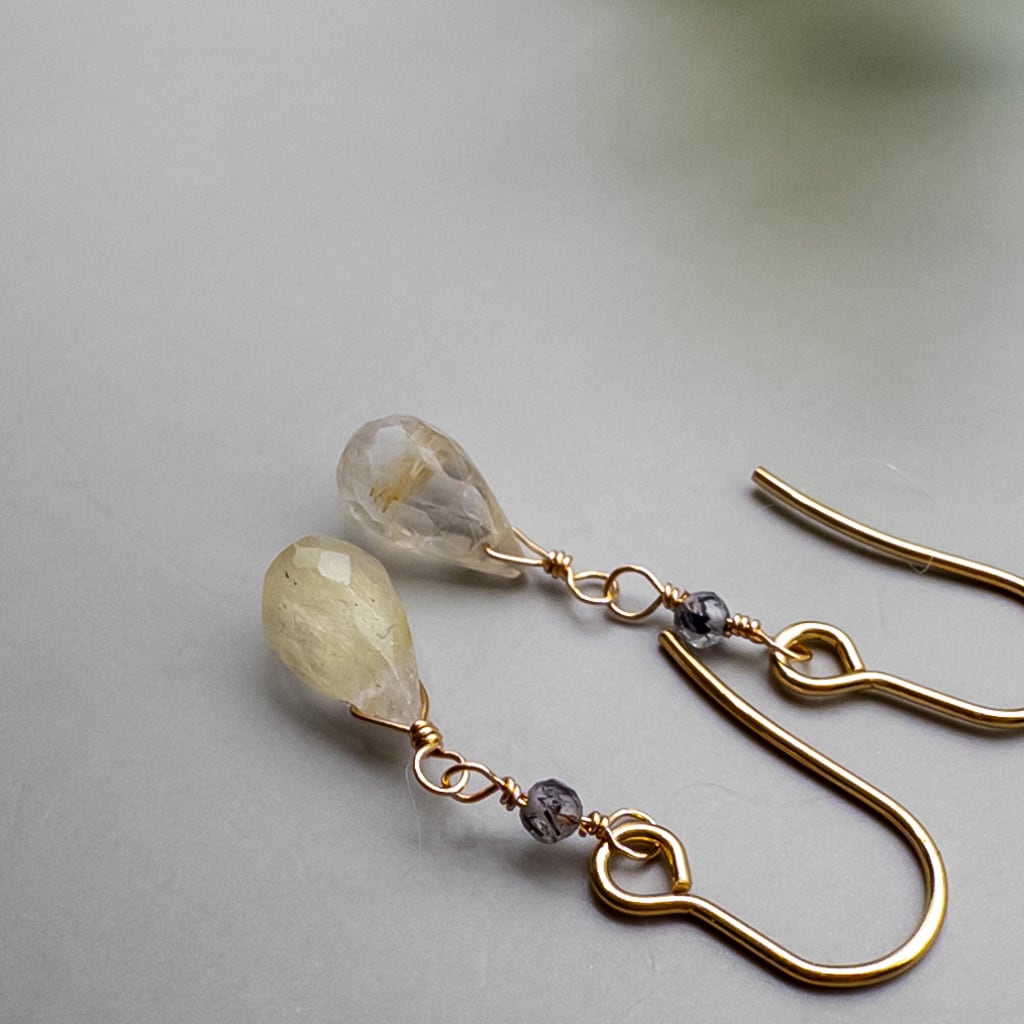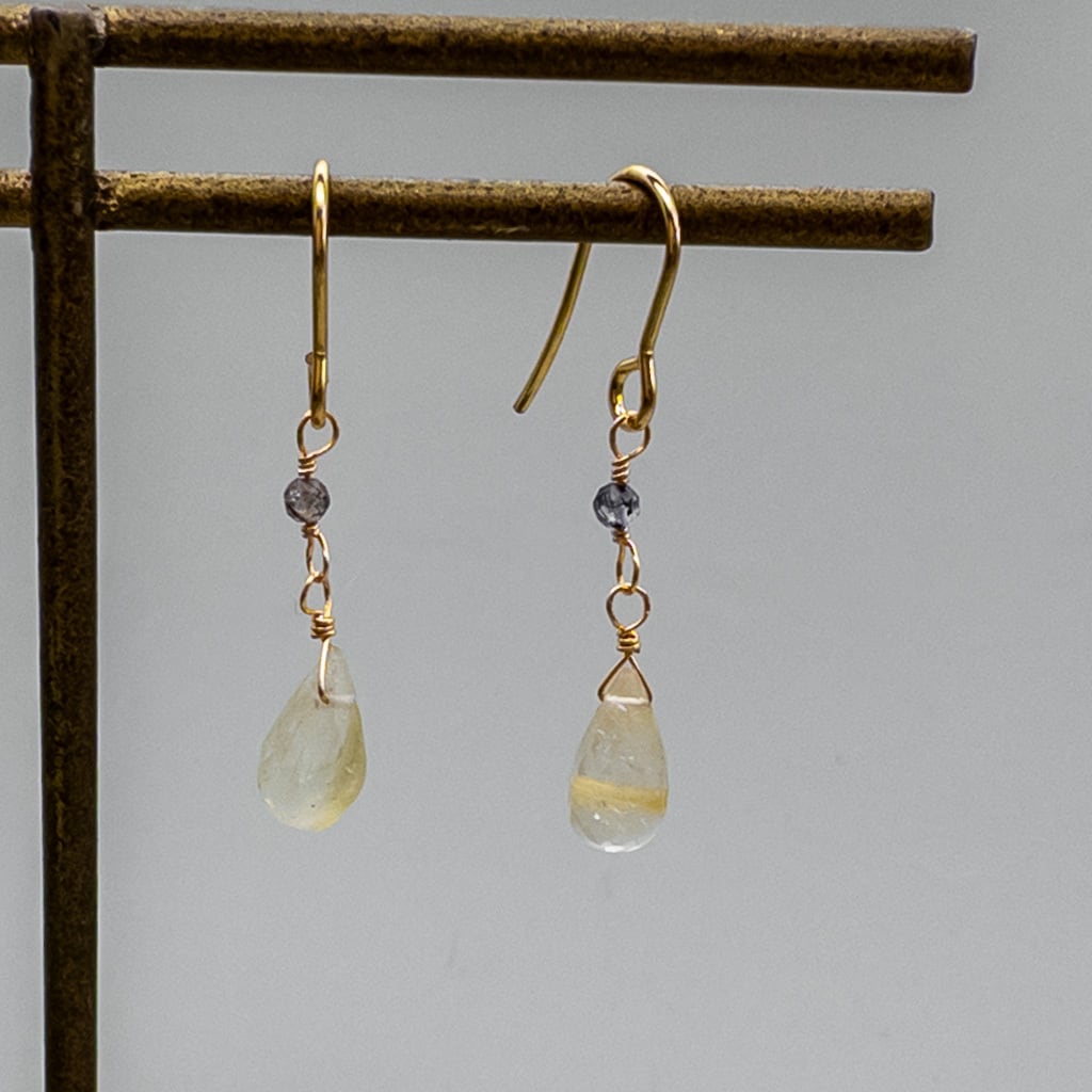さりげなく揺れる ルチルクォーツ ブラックルチルクォーツ ピアス ステンレス フックピアス ac233s2