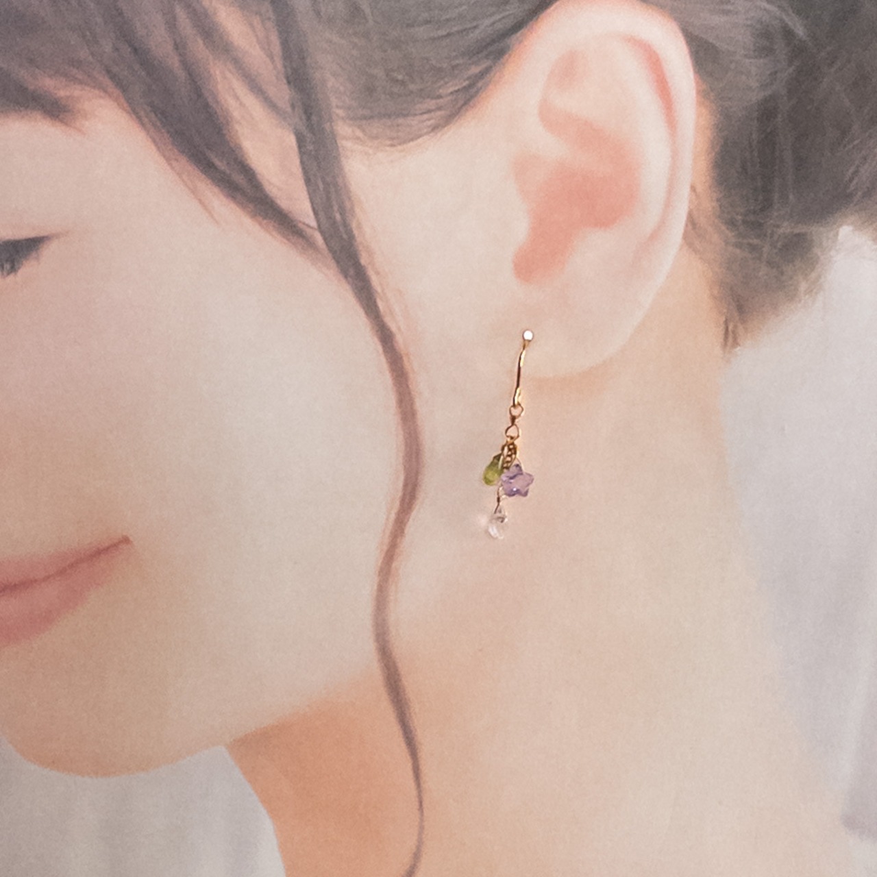 小さな花束 アメジスト スター ペリドット トパーズ ピアス *fiore* ステンレス 14GF変更可能 fi078s