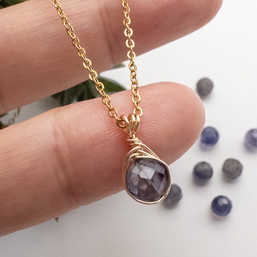 新しい発見 アイオライト ペンダント ネックレス ステンレス ワイヤーラッピング em128s