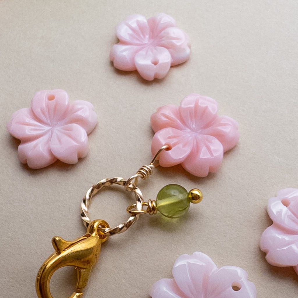 クィーンコンクシェルをお花のカタチにカービングしたビーズに